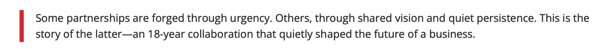 This openness created a working relationship where both sides move confidently - not by control, but by trust.